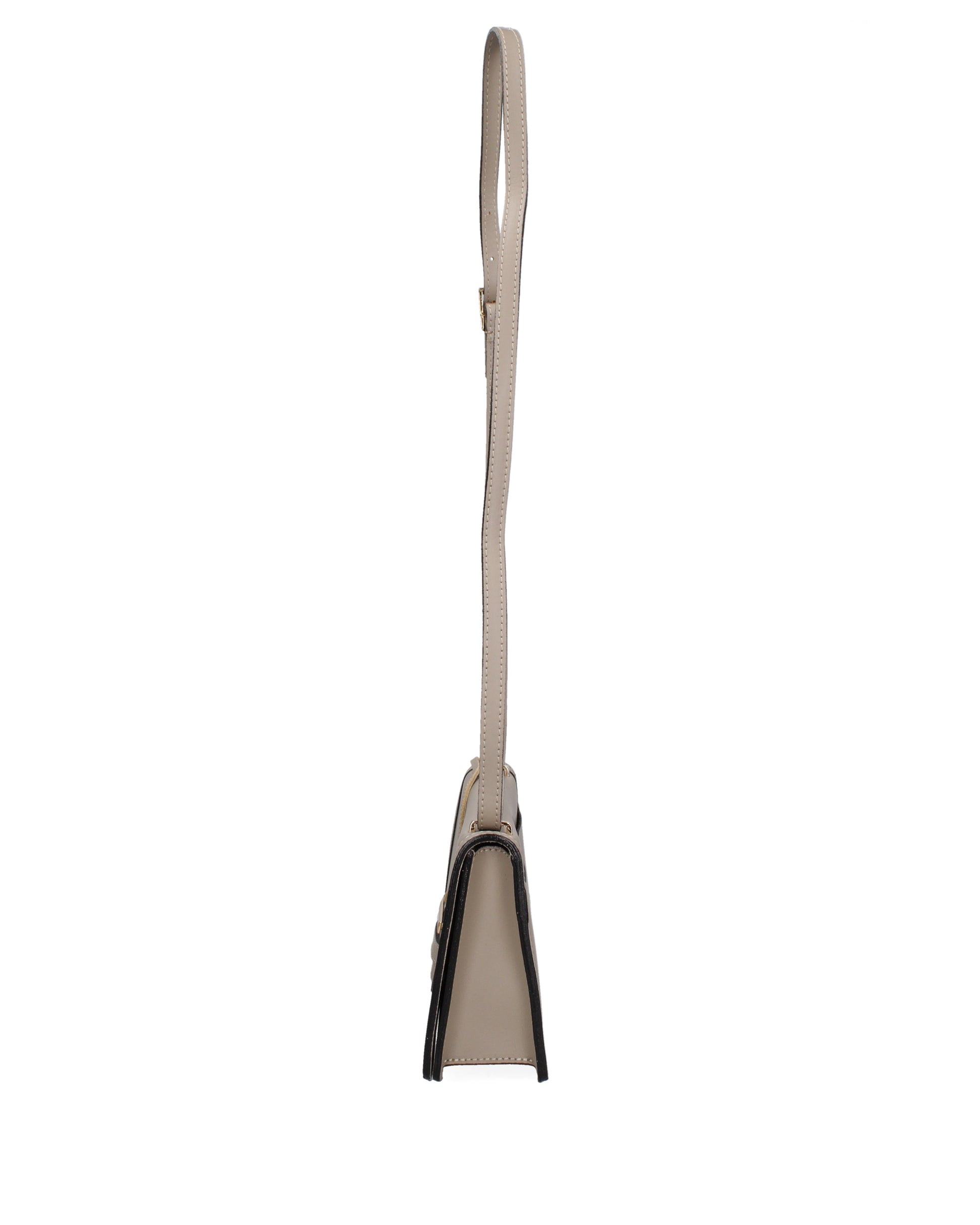Borsa a tracolla da donna. La chiusura è con bottone magnetico. Le tasche interne sono una con zip. Le tasche esterne sono una posteriore con zip. La tracolla è regolabile in pelle . Il manico è assente. Gli scomparti interni sono uno. Il materiale esterno è vera pelle ruga. Internamente è scamosciata. Misure: . Made in Italy